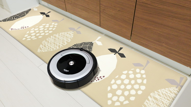 サッと汚れが拭ける、北欧風デザインの柔らかいマット。厚さが3.5mmと薄型なので、自動掃除機・掃除機も引っ掛かりにくい!