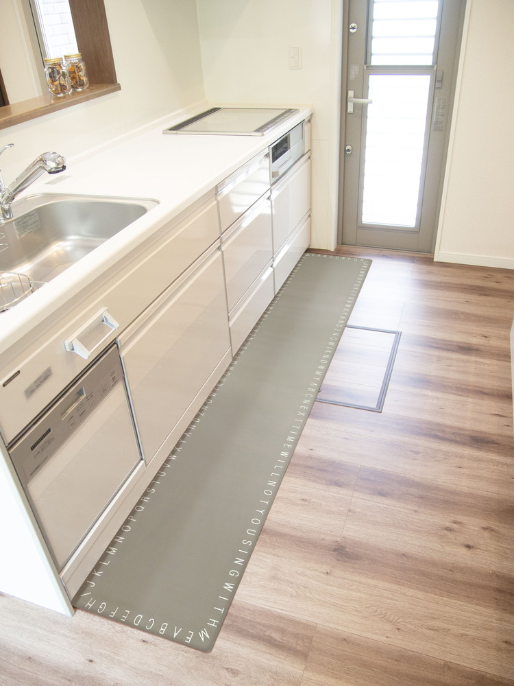 従来の拭けるマットより薄いので、全体の重量も軽く、移動もラクです。塩化ビニル樹脂で柔らかく弾力もあるので、長時間立っていても疲れにくい。