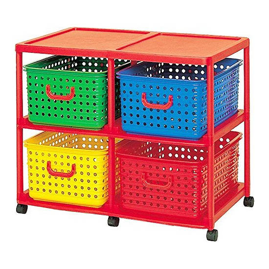 カラフルに色分けして収納。キャスター付きで移動ラクラク。※組立式