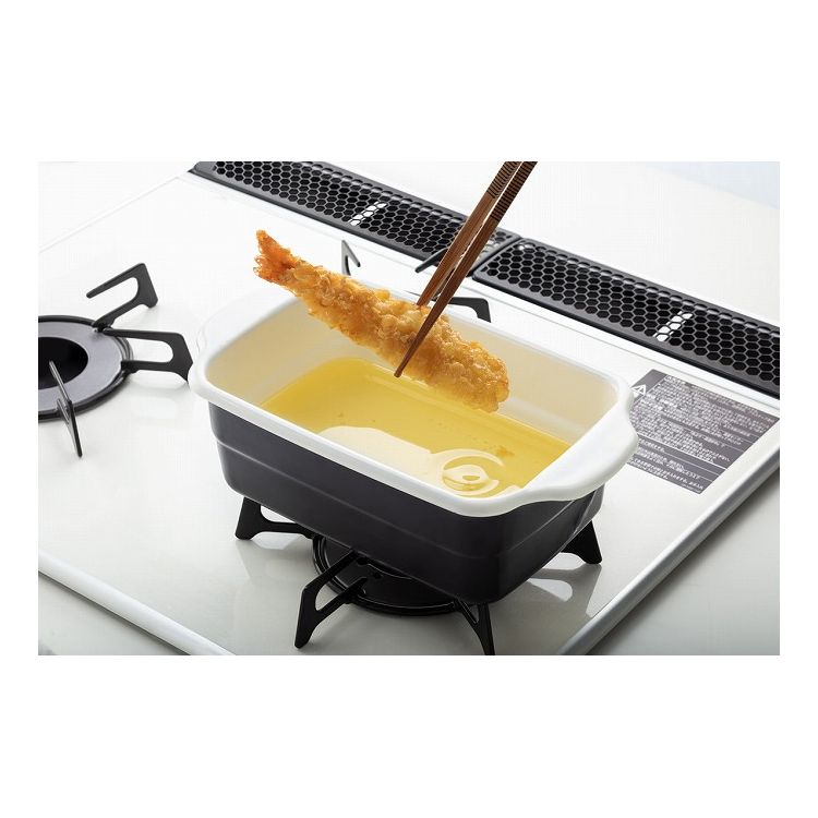 長い食材が揚げやすく、四角いから収納スペースをとらない、ホーロー製の角型天ぷら鍋。ほうろう製だから、油汚れや腐食に強く、臭い移りしにくい。