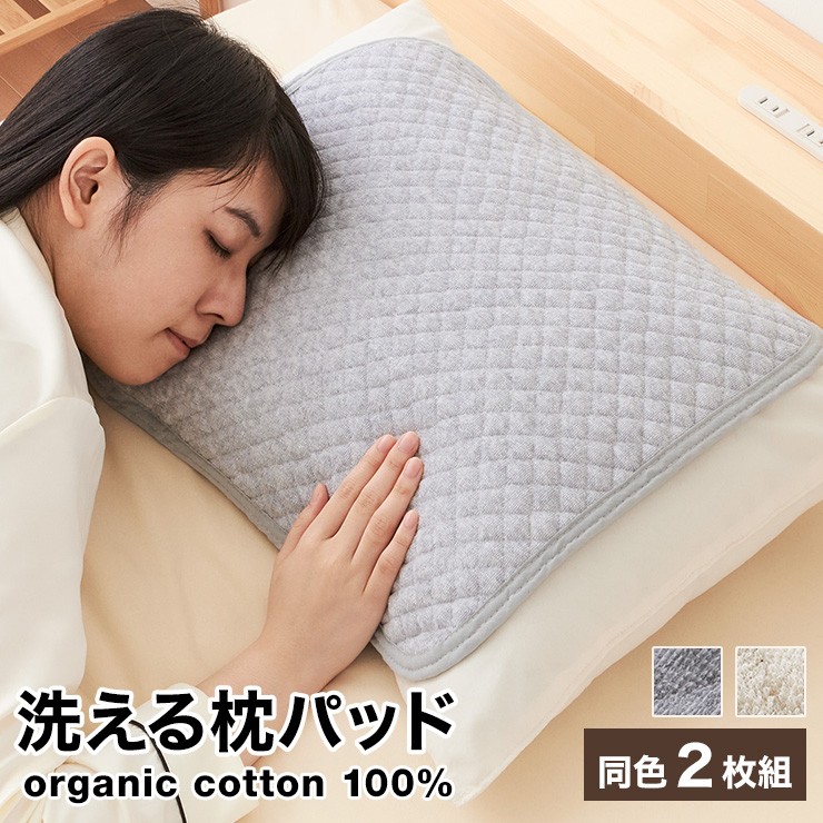 枕パッド 綿100% オーガニックコットン 同色2枚組セット 43×50cm 洗える タオル生地 枕カバー ピローパッド 枕パット 二枚組み