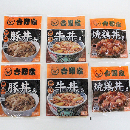 牛丼の具120g×2袋、豚丼の具120g×2袋、焼鶏丼の具120g×2袋