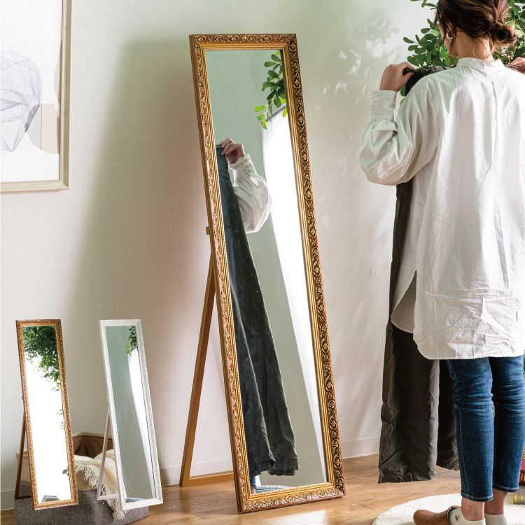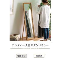 スタンドミラー アンティーク風 全身鏡 姿見 40×150 幅40 高さ150 飛散防止フィルム ブロンズ ホワイト 木製 おしゃれ 大型 シンプル クローゼット 代引不可