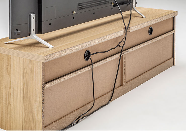 ・天板下のオープン部分には、左右それぞれ配線穴があります。配線を傷つけにくいゴムコーダー付きです。