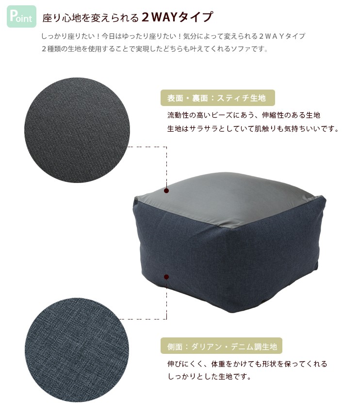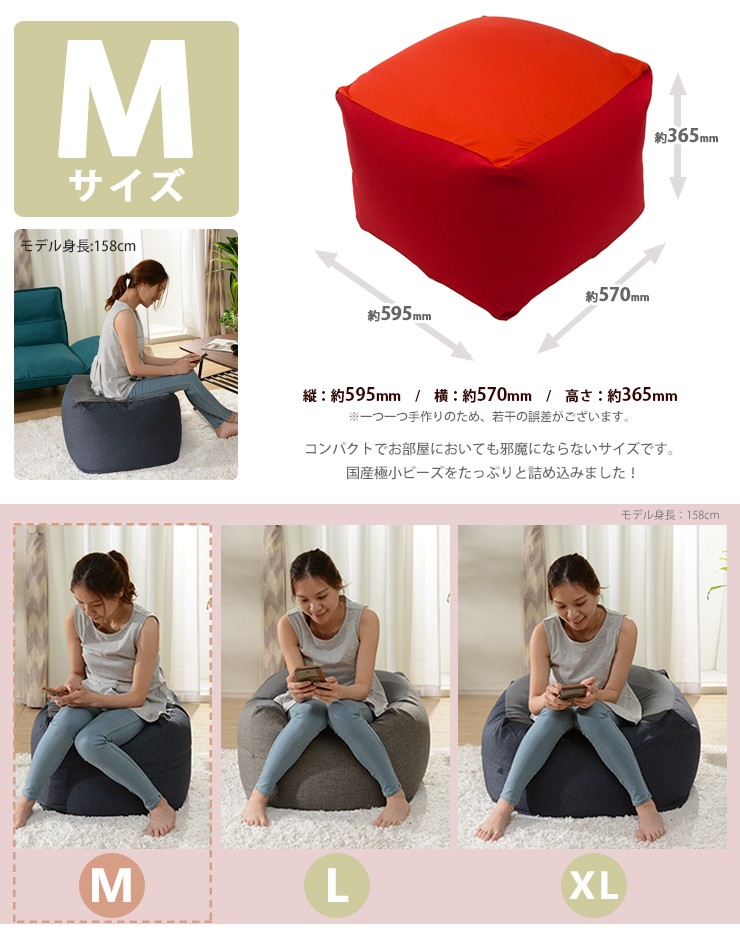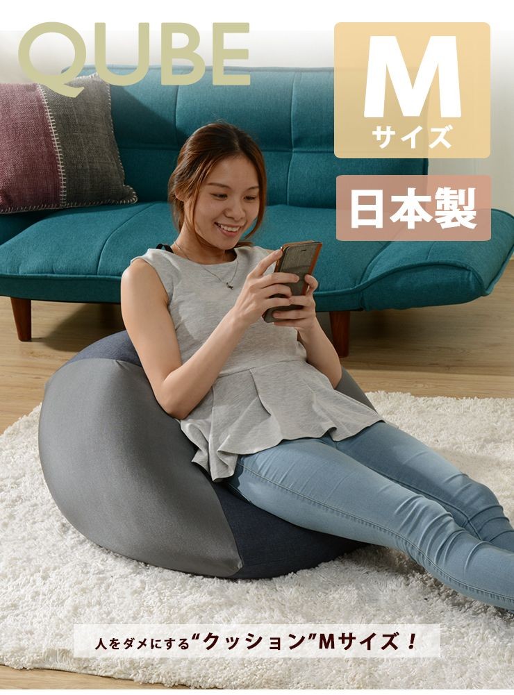 日本製 ビーズクッション 四角形 幅59.5 奥行き57 ビーズソファ QUBE M 国産 洗えるカバー おしゃれ かわいい カバーリング 洗濯 代引不可