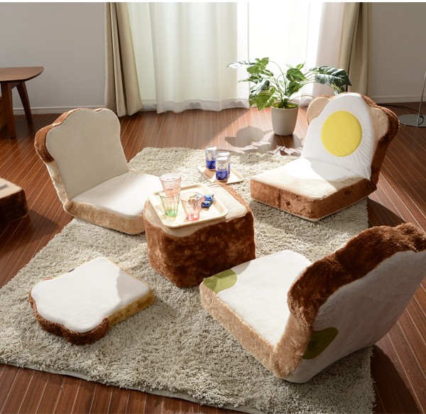 カバーリング めだまやき食パン座椅子 日本製 目玉焼き 食パン 座椅子 コンパクト おしゃれ 代引不可