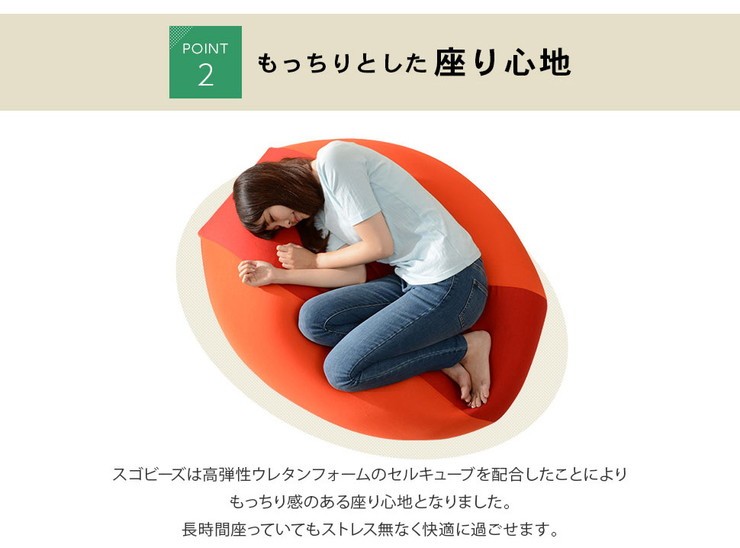 従来のビーズクッションと比較してへたりにくい!のがこのスゴビーズの特徴。