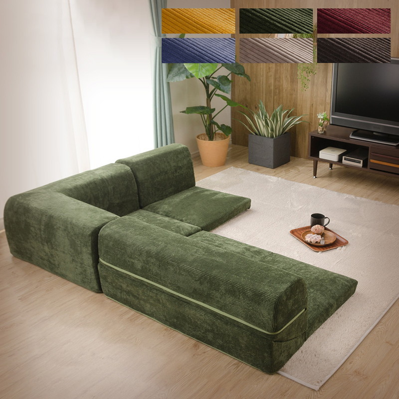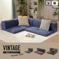 日本製 和楽 コーナーソファ ヴィンテージ 3点セット フロアソファ 3人掛け ローソファ おしゃれ ごろ寝 こたつソファ ソファ コーデュロイ 代引不可