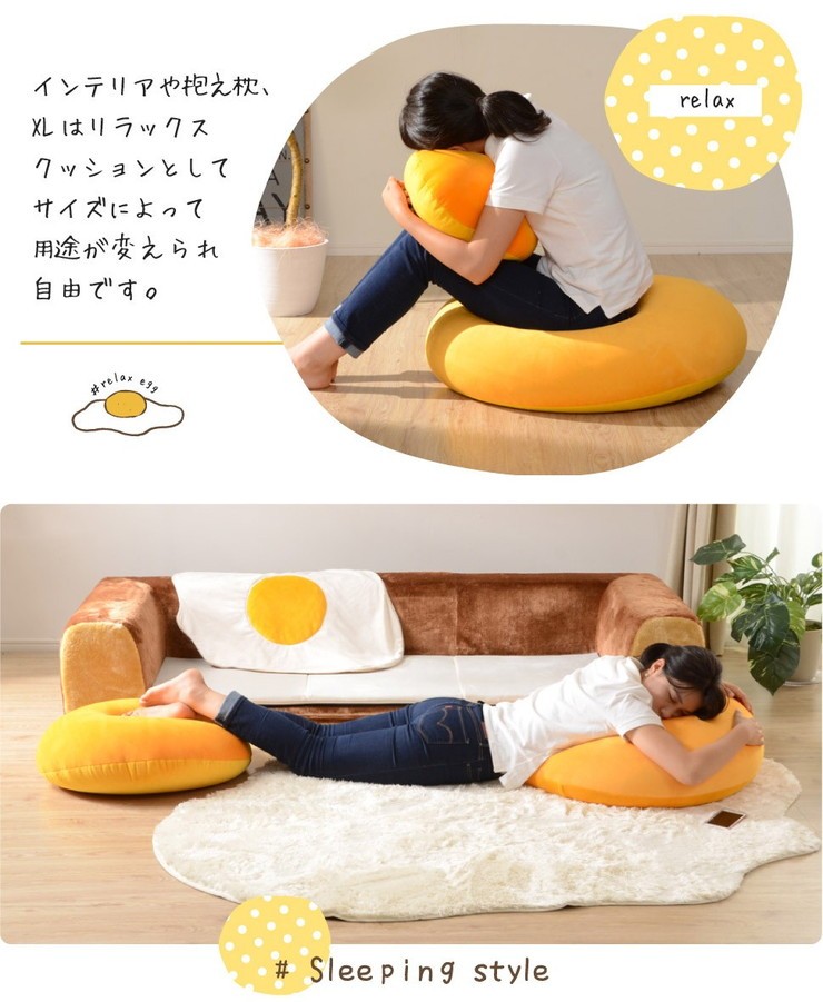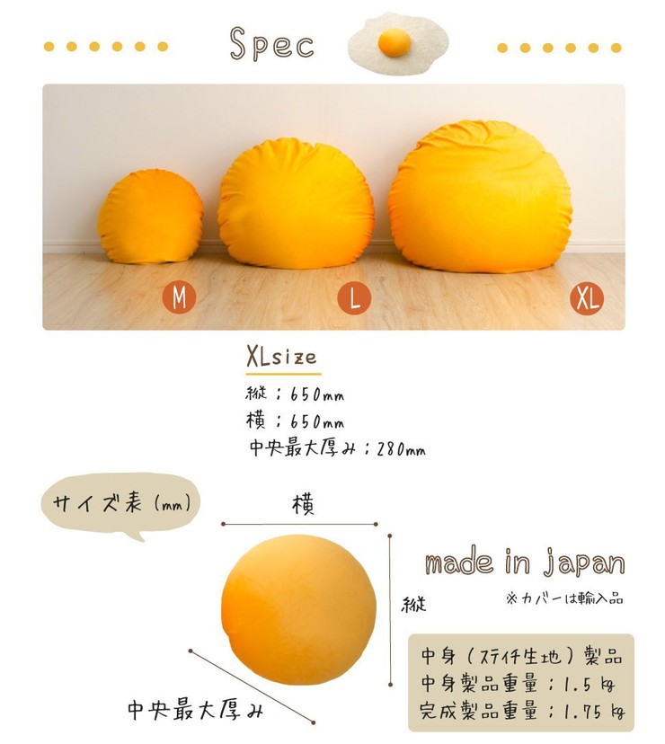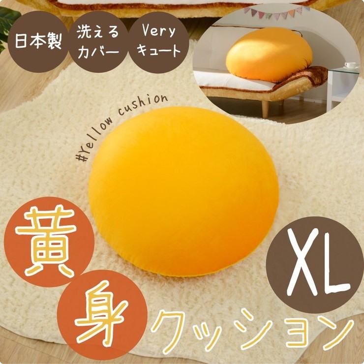 卵の黄身 クッション XLサイズ 食パンシリーズ クッション たまご 黄身 大きい ビーズクッション 国産 日本製 代引不可
