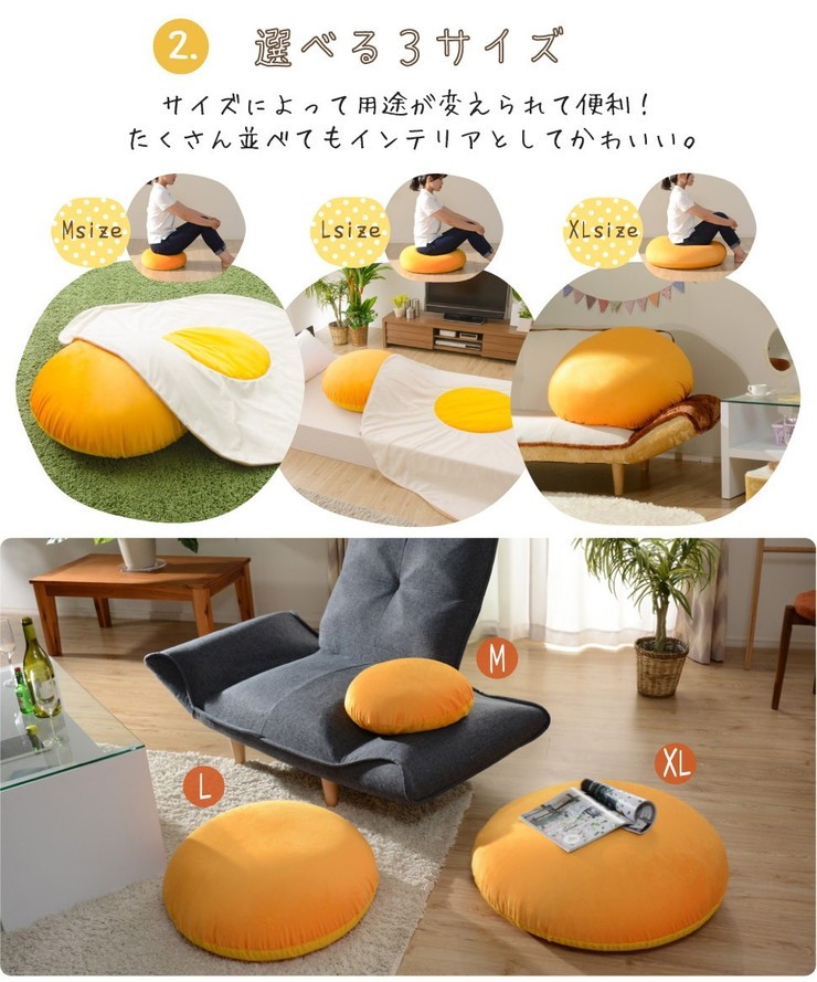 食パンシリーズのクッションにたまごの黄身のかわいいクッションが登場。