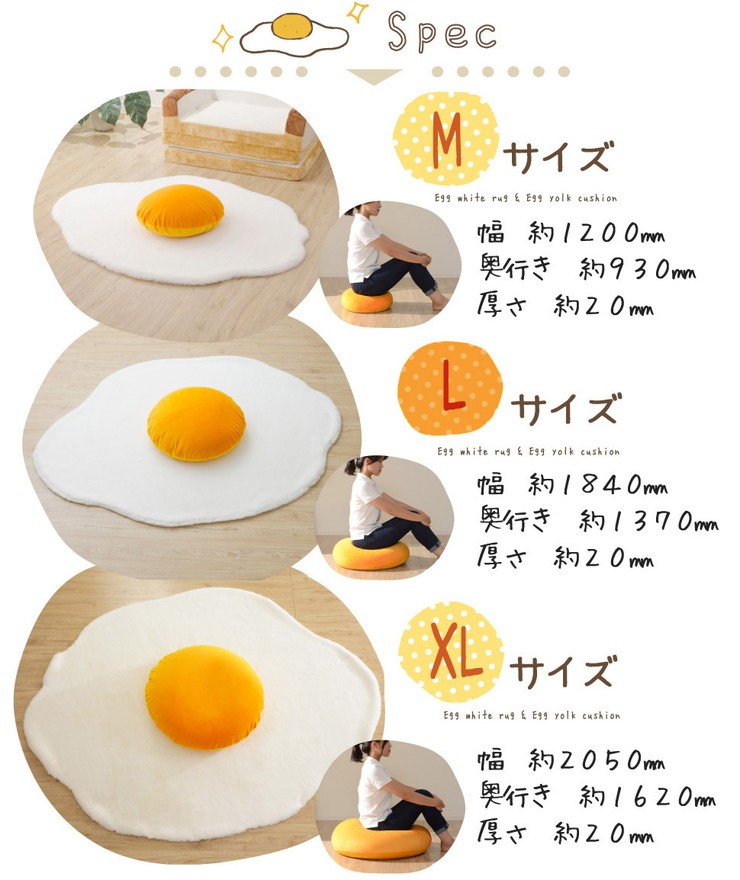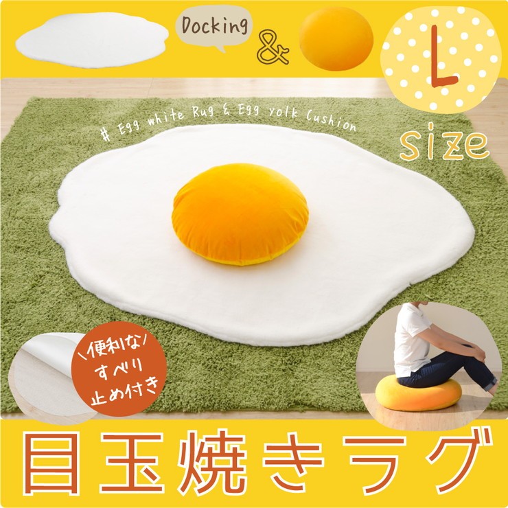 目玉焼きラグマット Lサイズ 黄身クッション 白身ラグマットの2点セット 食パンシリーズ 代引不可