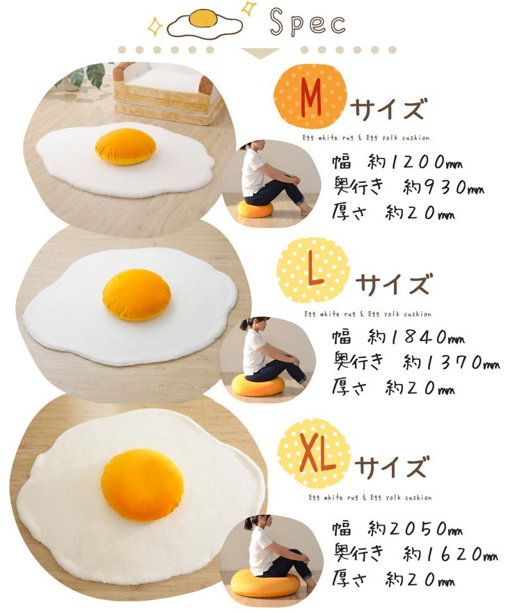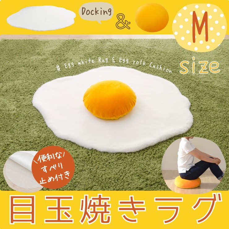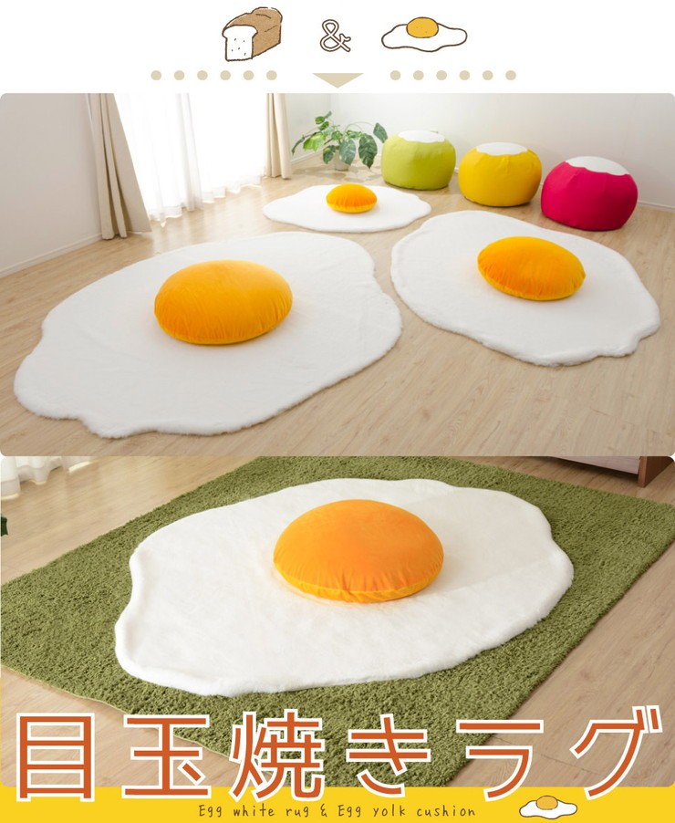 目玉焼きラグマット Mサイズ 黄身クッション 白身ラグマットの2点セット 食パンシリーズ 代引不可