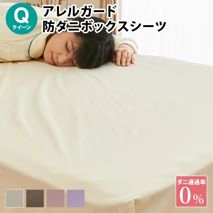 アレルガード ボックスシーツ クイーン 159×200×30cm 防ダニ 高密度生地使用 洗える ベッドシーツ ボックスカバー 花粉対策 代引不可