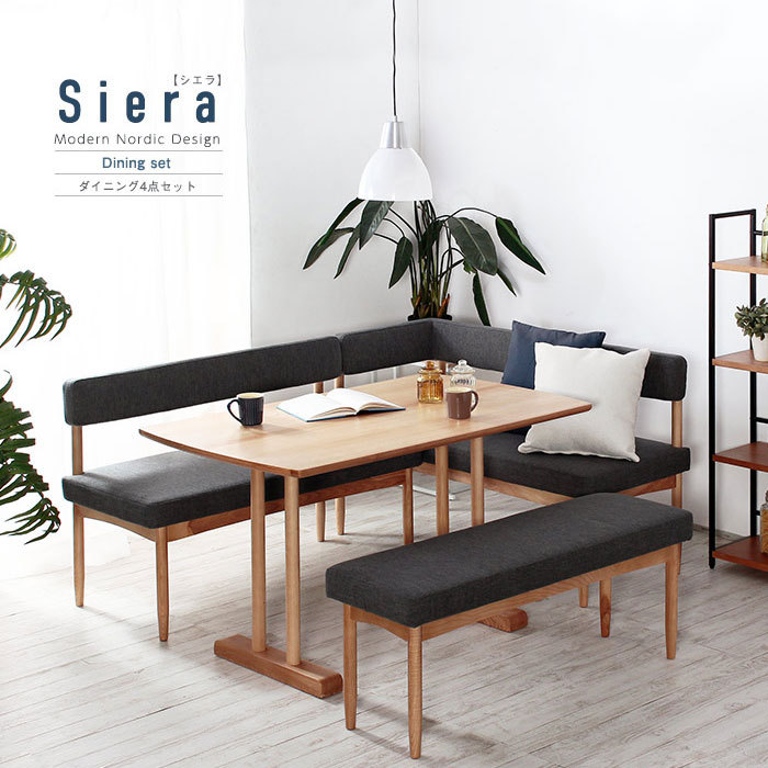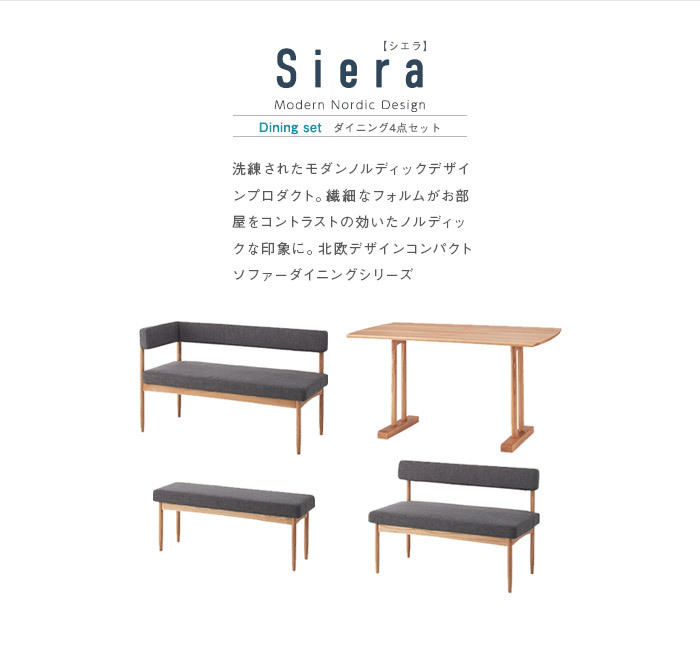 Siera シエラ ダイニングシリーズ 4点セット 台所 ダイニング 机セット テーブル ソファ 片肘ソファ ベンチ ダイニングセット 代引不可