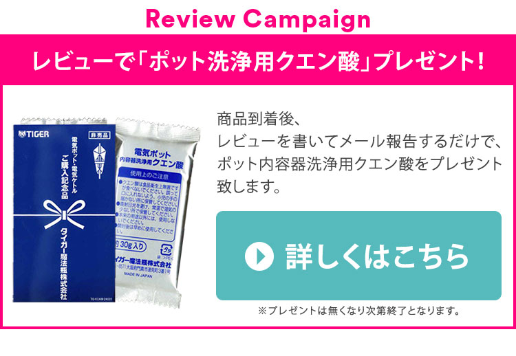 タイガー魔法瓶 マイコン電動ポット 電気ポット 3.0L 電動式 PDR-G301W ホワイト レビュー報告でポット洗浄用クエン酸
