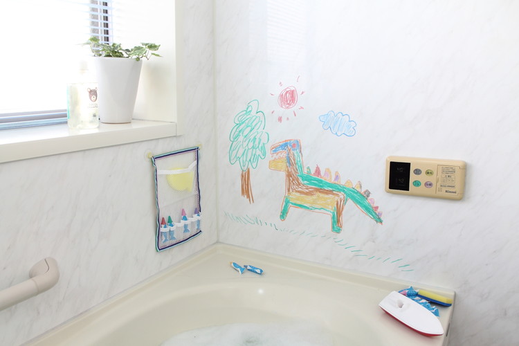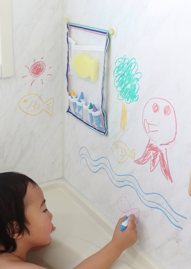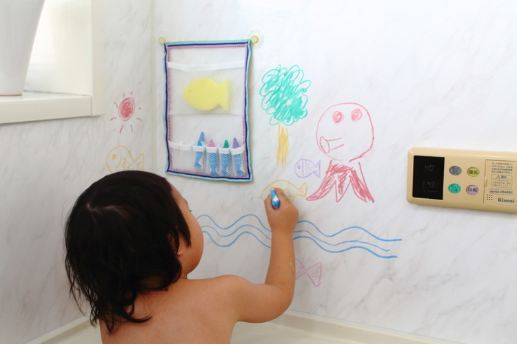 おふろの壁、浴槽に描けて消せる筆記具です。米糠から採れるワックスを使用しており、濡れたところにも描けます。