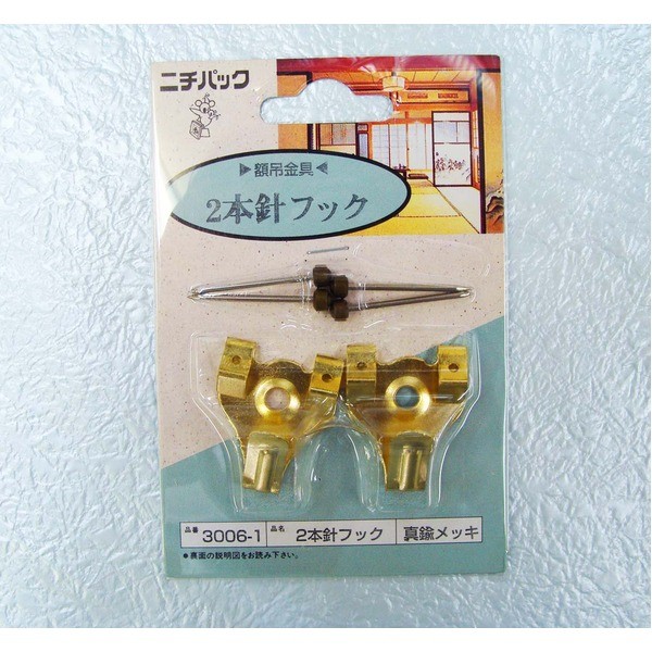 【商品名】【5個セット】 壁掛け用金具/額吊り金具 【合板・木壁・石こうボード用 3.5kgまで】 ゴールド 2本針フック3006-1