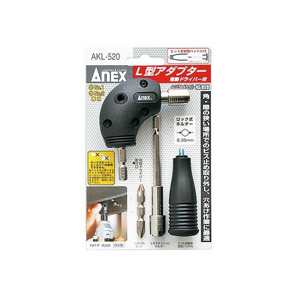 【セット内容/付属品】L型アダプター本体、固定ハンドル(ビット収納可能)、エクステンションホルダー、#2×45(両頭ビット)