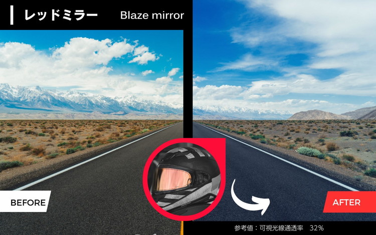 ・シールドインナータイプのため、ミラーシールドあるあるの『高価なシールドが引っかき傷でダメに・・・』、『雨天走行でコーティング剥がれ』の心配が少なくて安心!