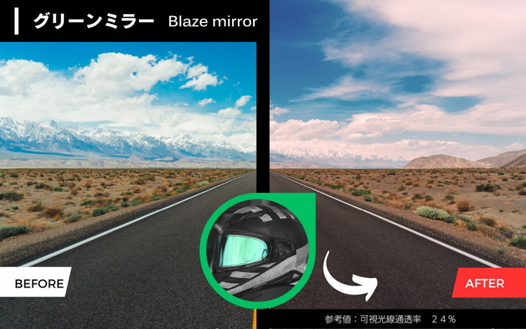 ・シールドインナータイプのため、ミラーシールドあるあるの『高価なシールドが引っかき傷でダメに・・・』、『雨天走行でコーティング剥がれ』の心配が少なくて安心!