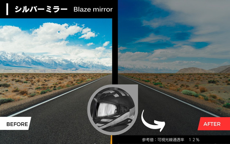 ・シールドインナータイプのため、ミラーシールドあるあるの『高価なシールドが引っかき傷でダメに・・・』、『雨天走行でコーティング剥がれ』の心配が少なくて安心!