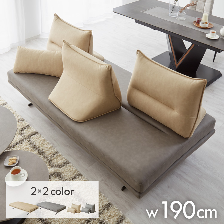 ソファ 3人掛け アイランドソファ 背もたれクッション×3 ソファセット 開梱設置無料 脚付き ファブリックレザー 3P ソファベッド フロアソファ 代引不可