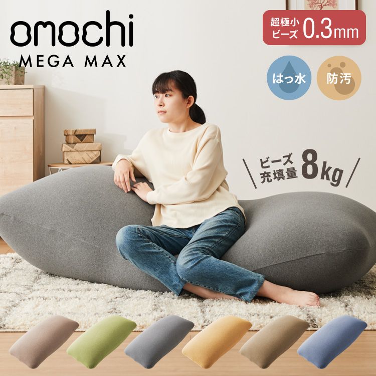 ビーズクッション omochi MEGAMAX 170×65 充填量8kg 特大サイズ ソファー 撥水 ビーズソファー フロアソファー 背もたれ 1人 極小ビーズ
