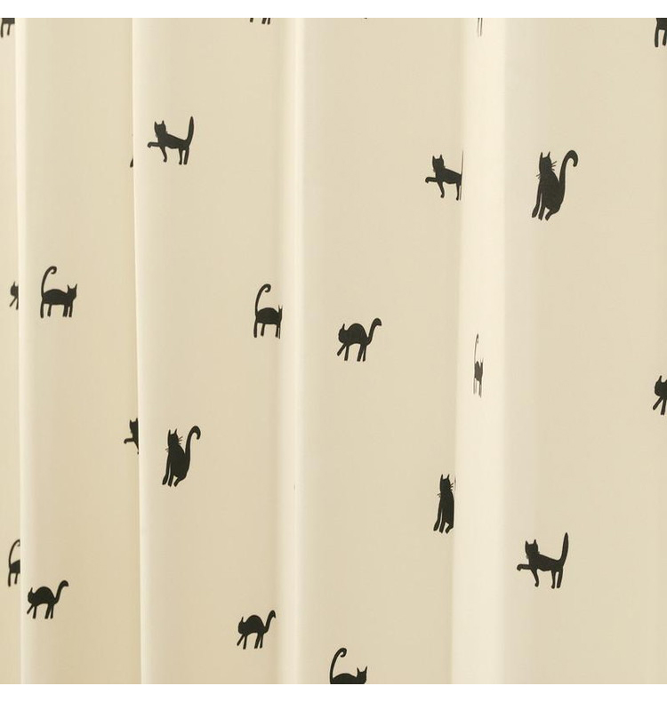 シルエットの黒ねこがプリントされたドレープカーテン。太陽光を取り入れる非遮光タイプで軽い風合いです。