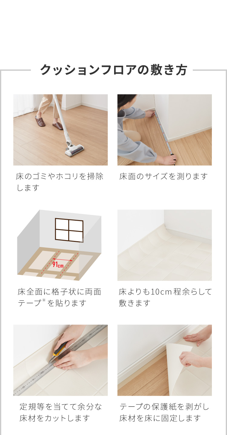 〇他:市販のクッションフロア用のすべり止めシートと併せてご使用いただきますと安全性が高まります