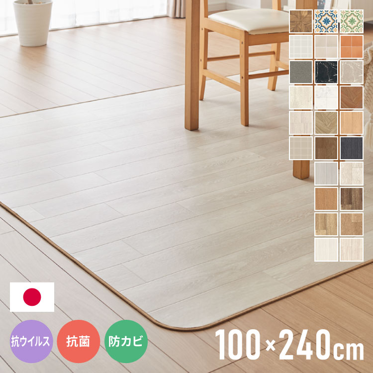 クッションフロア 100×240cm ダイニングラグ 日本製 フロアシート 撥水 抗菌 防カビ 傷防止 フロアマット クッションシート ダイニングラグ 代引不可