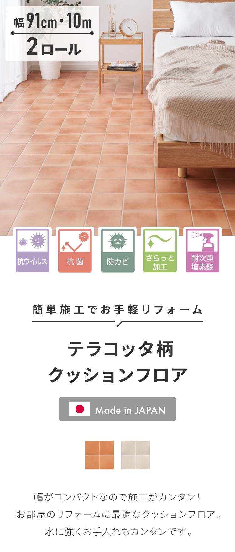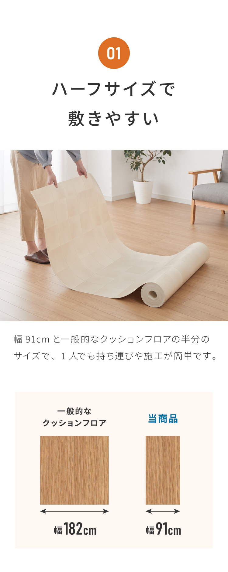 巾がコンパクトなので施工がカンタン!お部屋のリフォームに最適なクッションフロアです。