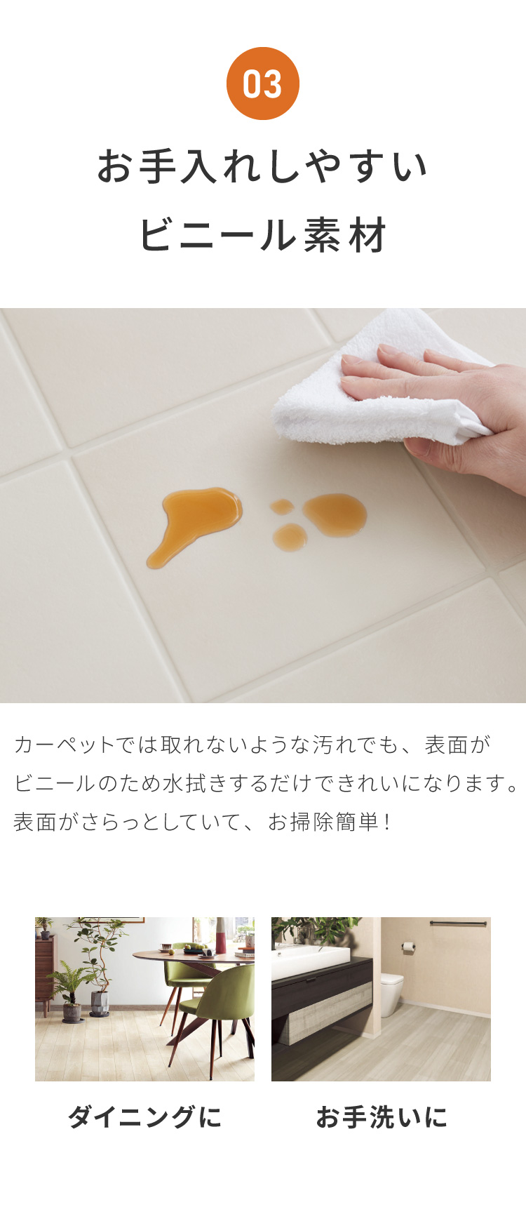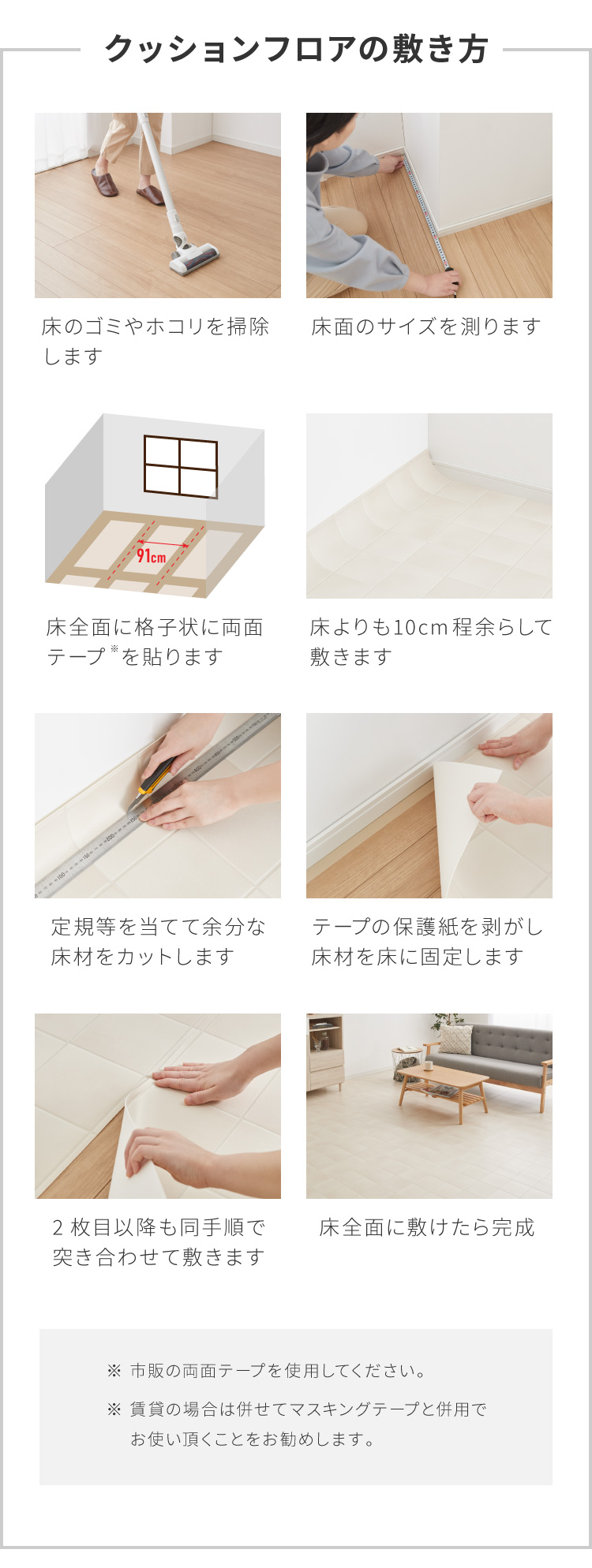 ■他:市販のクッションフロア用のすべり止めシートと併せてご使用いただきますと安全性が高まります。
