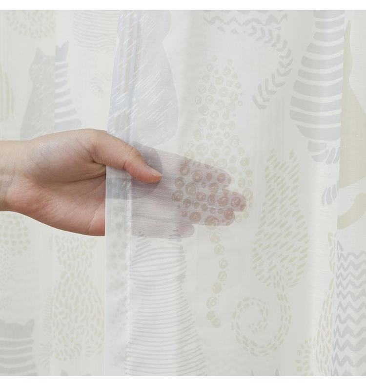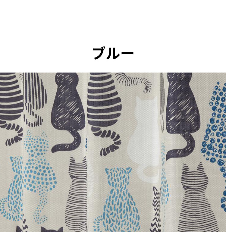 ドレープカーテン レースカーテン付き 猫柄 形状記憶 4枚セット 4枚組 ウォッシャブル ねこ ネコ 模様 おしゃれ かわいい 子ども 子供 幅100cm 代引不可