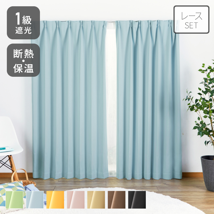 1級遮光カーテン 4枚セット 2枚セット 幅100 幅150 7サイズ カーテン レースカーテン付き 遮光 遮熱 UVカット 紫外線 保温 節電 省エネ 冷暖房効率 代引不可