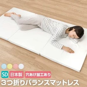 日本製 バランス マットレス セミダブル 厚さ5cm 硬め 三つ折り 3つ折り 折りたたみ 高反発 ウレタン 白 レビュー&報告でアイススプーンプレゼント 代引不可