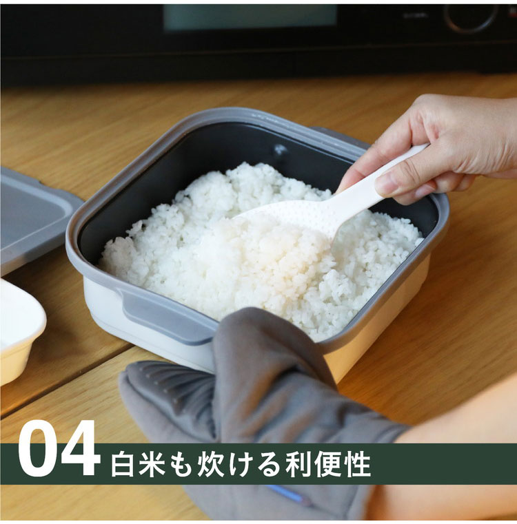 深型設計なので、鍋料理や煮込み料理、スープ、鍋物、インスタント麺やうどんなどの麺類の調理など多彩なレシピを電子レンジで手軽に作ることが出来る。