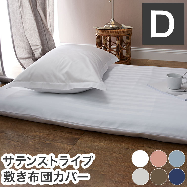 敷き布団カバー ホテル風 ダブルサイズ 145cm×215cm サテンストライプ 敷カバー シングルロング 光沢 ピーチスキン加工 代引不可