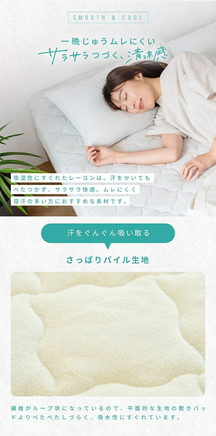 2枚set さらさらレーヨンパイル 一体型ボックスシーツ シングル ほんのり涼しい 敷きパッド さらさら レーヨン パイル タオル地 抗菌 ベッドパッド 代引不可