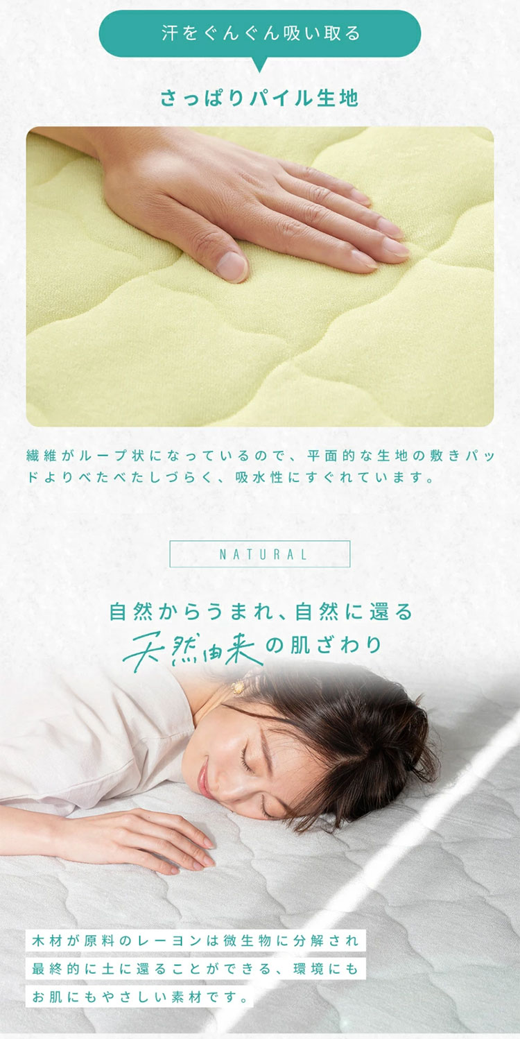 2枚set さらさらレーヨンパイル 敷きパッド ゴムありタイプ ダブル 強化ゴム ほんのり涼しい 敷きパッド さらさら レーヨン パイル タオル地 抗菌 代引不可