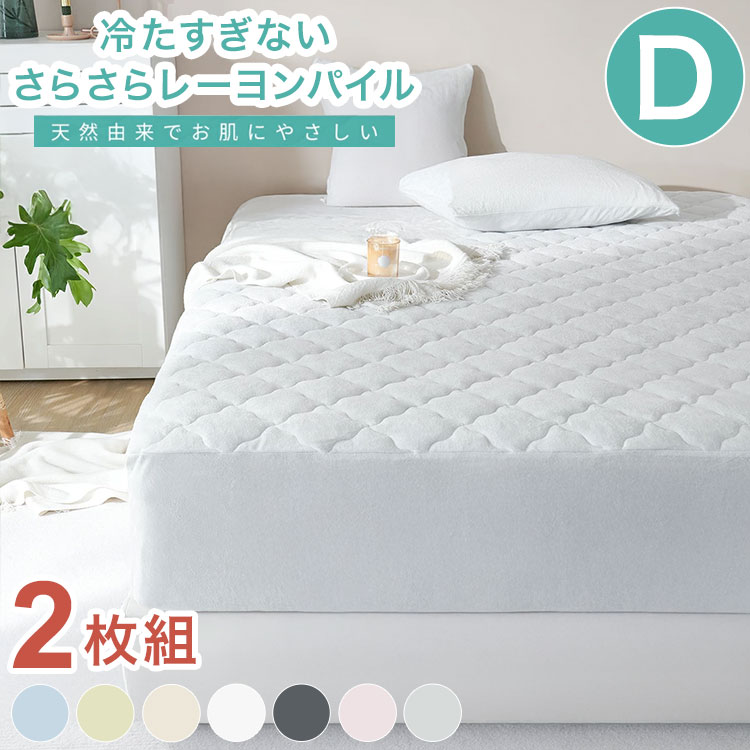 2枚set さらさらレーヨンパイル 一体型ボックスシーツ ダブル ほんのり涼しい 敷きパッド さらさら レーヨン パイル タオル地 抗菌 ベッドパッド 代引不可