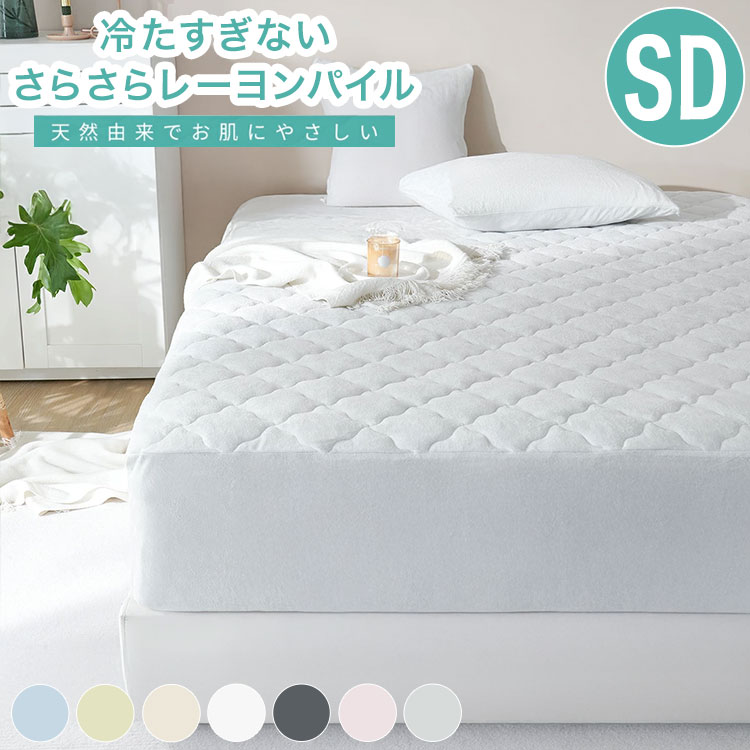 さらさらレーヨンパイル 一体型ボックスシーツ セミダブル ほんのり涼しい 敷きパッド さらさら レーヨン パイル タオル地 抗菌 ベッドパッド 代引不可