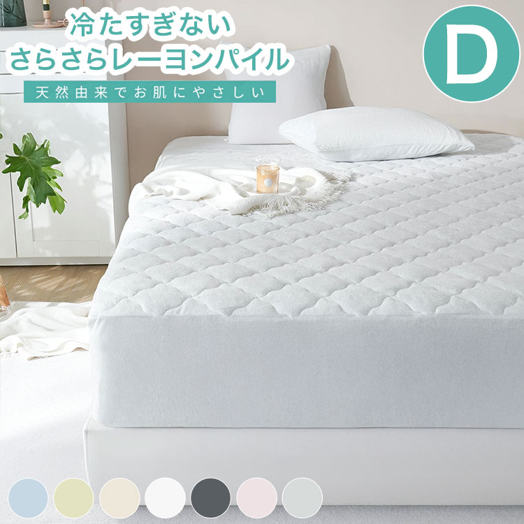 さらさらレーヨンパイル 一体型ボックスシーツ ダブル ほんのり涼しい 敷きパッド さらさら レーヨン パイル タオル地 抗菌 ベッドパッド 冷感寝具 代引不可
