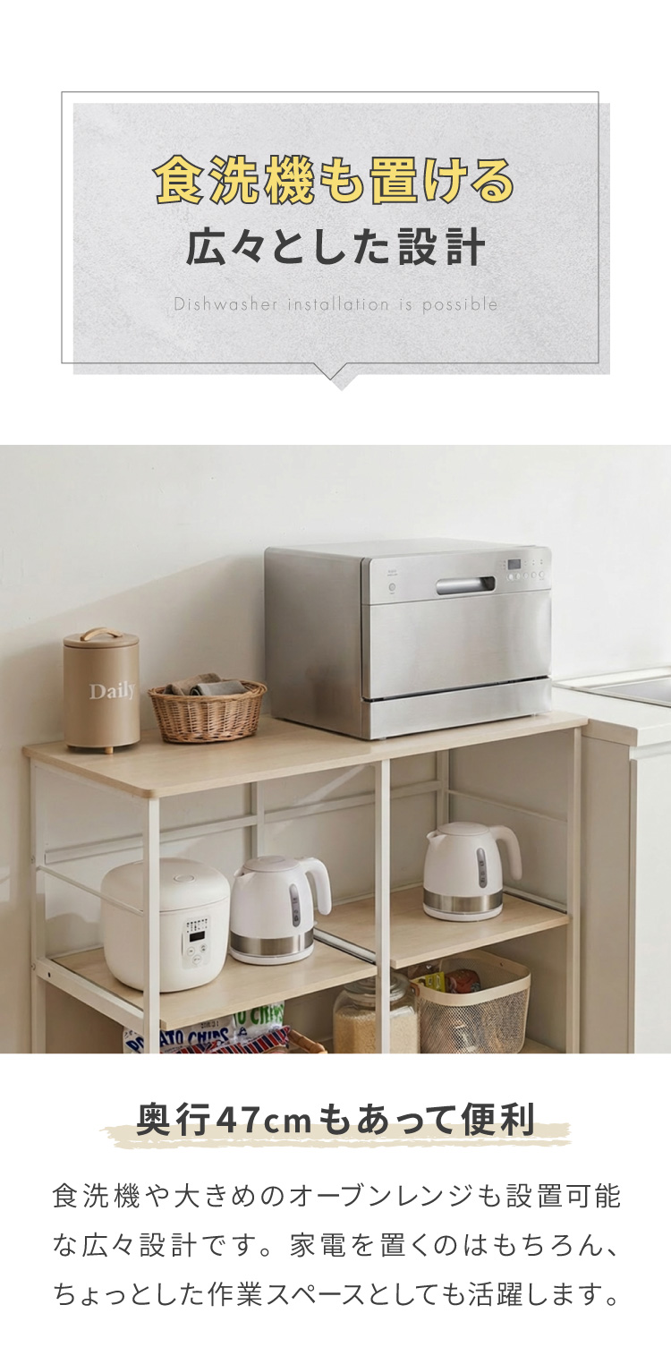 ・奥行きが45cmあるので、オーブンレンジや食洗機も置けます。