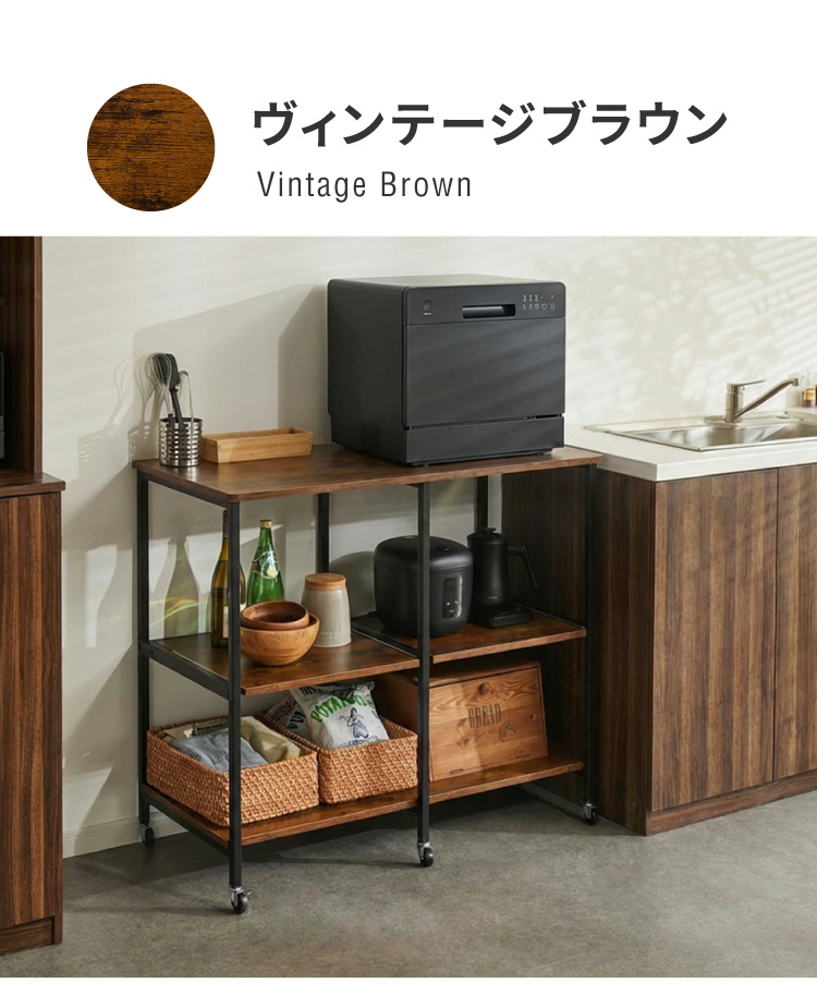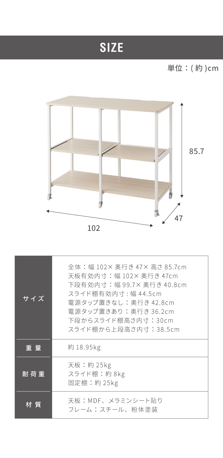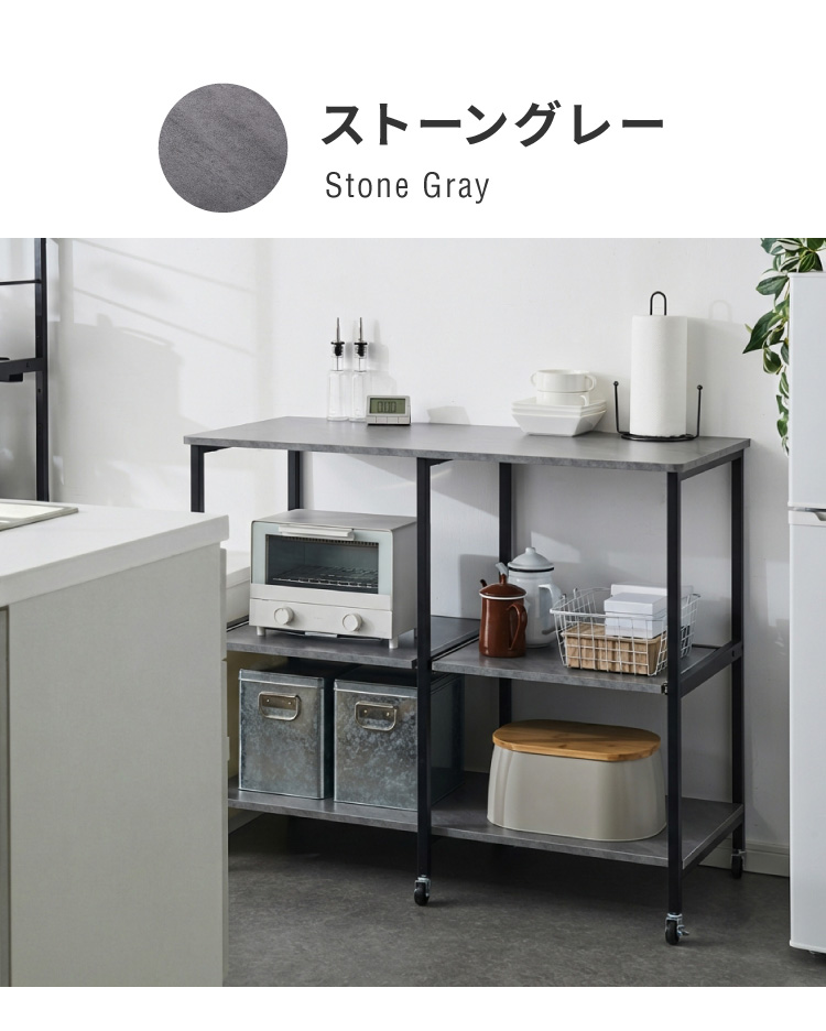 ダブルスライド棚 キャスター付き キッチンカウンター 幅100 VOID STACK series 大型レンジ対応 キッチンラック レンジ台 レンジボード レンジラック 代引不可