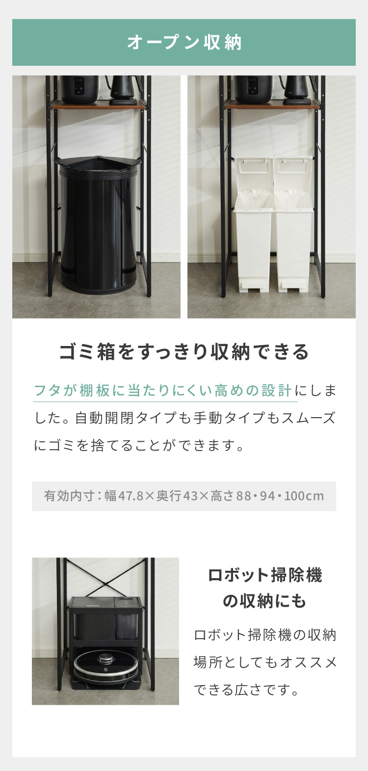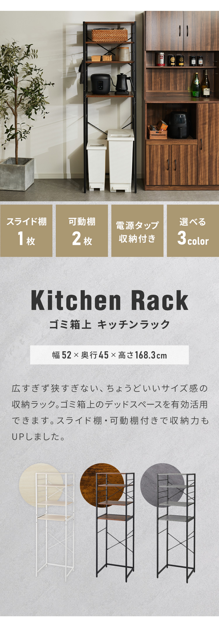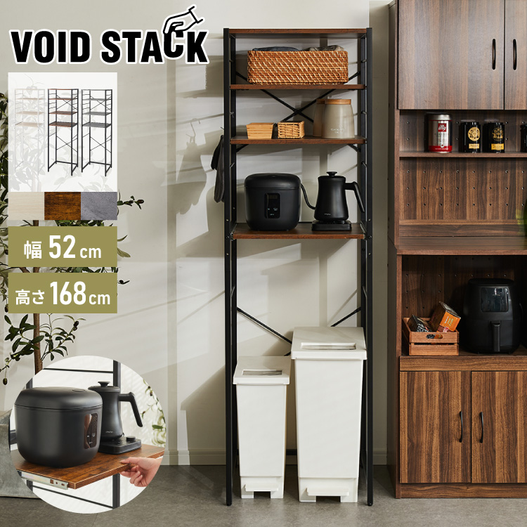 キッチンラック ゴミ箱上 ラック 幅52cm 3段 VOID STACK series ゴミ箱ラック レンジ台 レンジボード レンジラック オープンラック キッチン ラック 代引不可