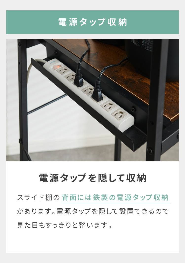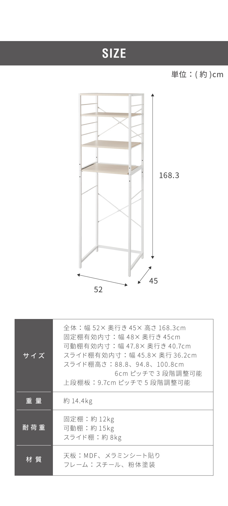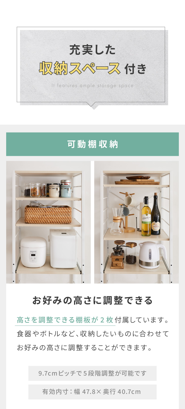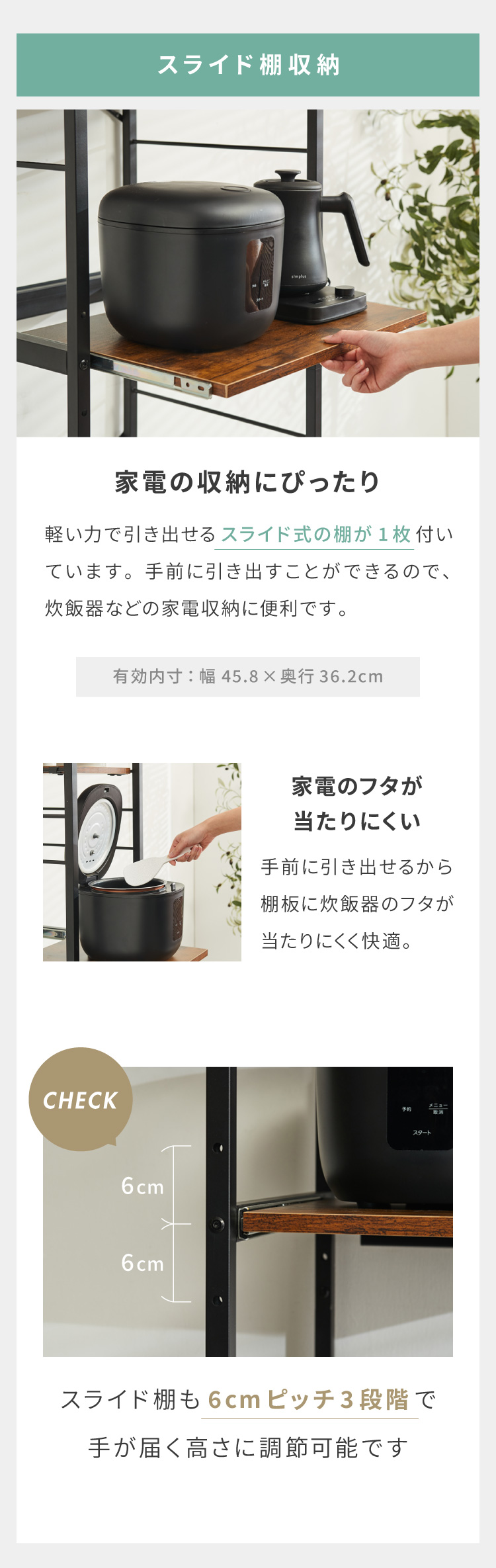 スライド棚高さ:88.8、94.8、100.8cm(6cmピッチで3段階調整可能)