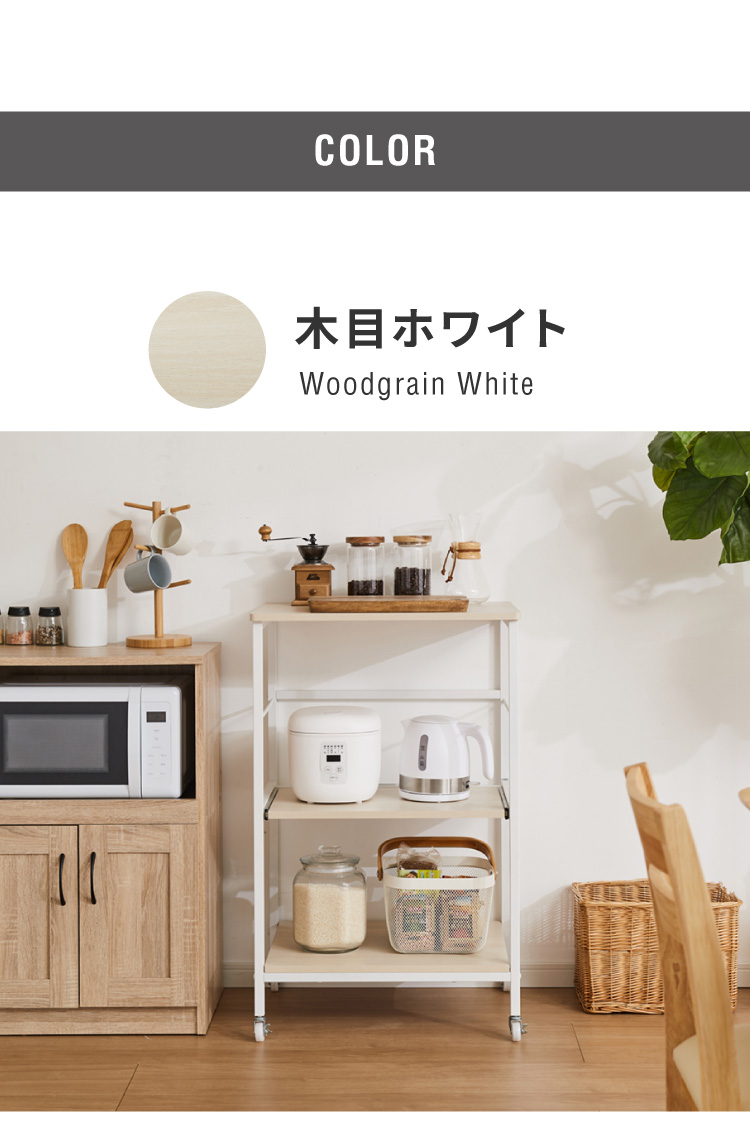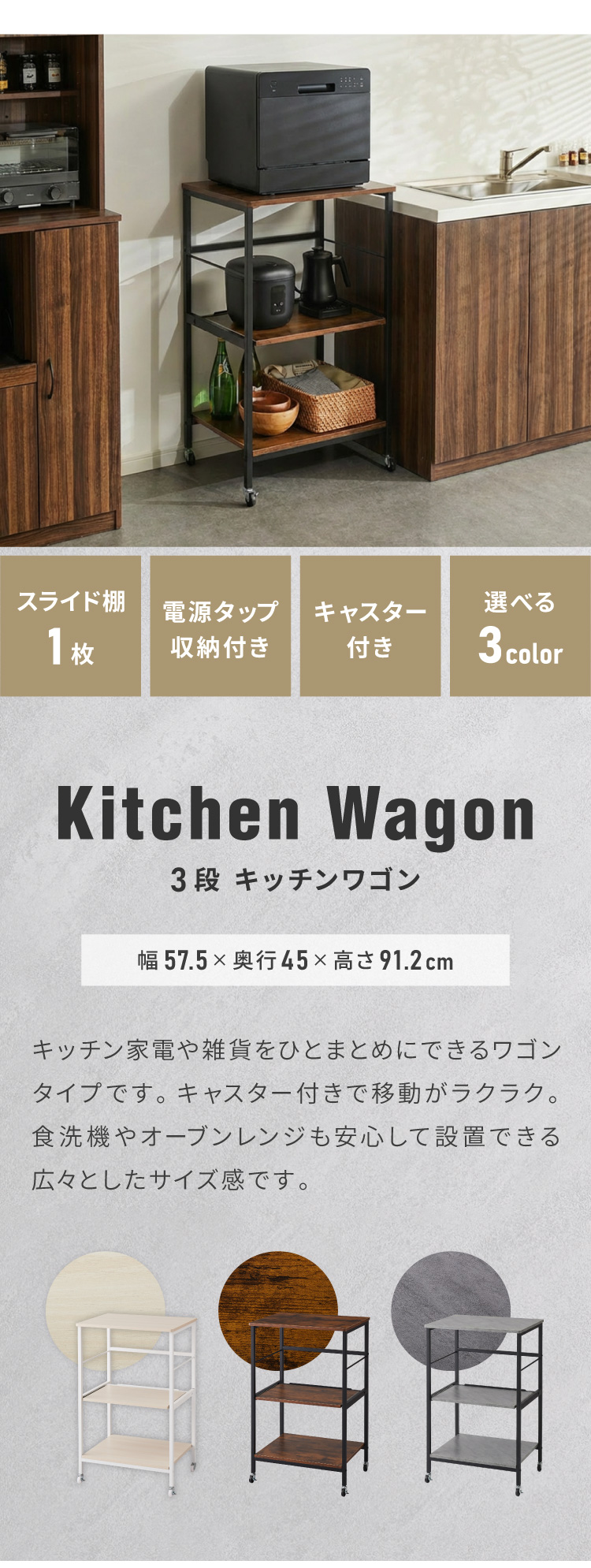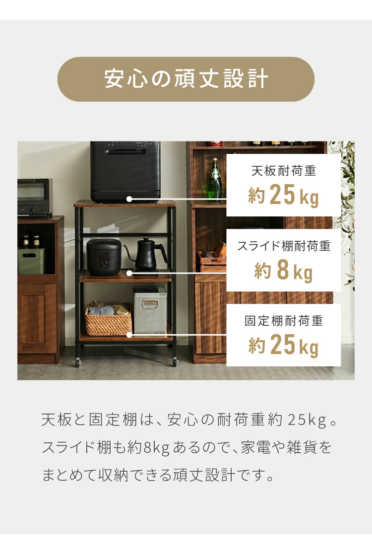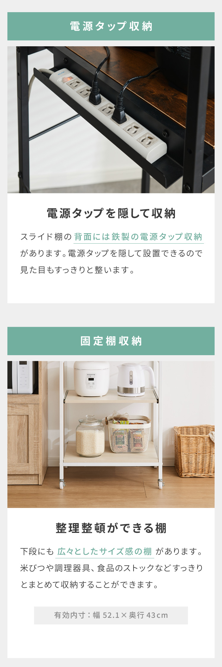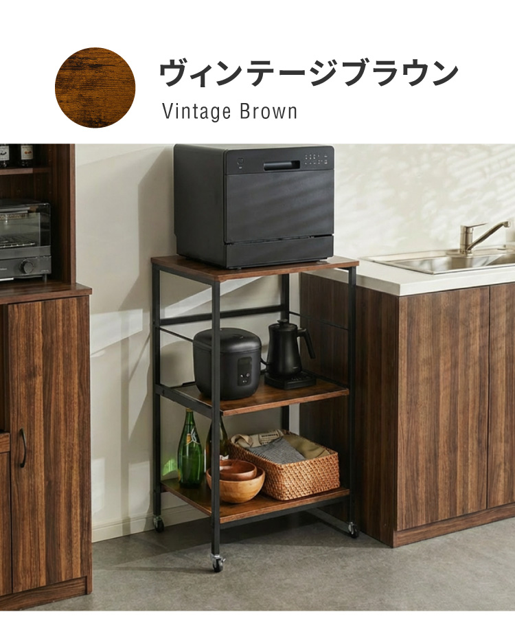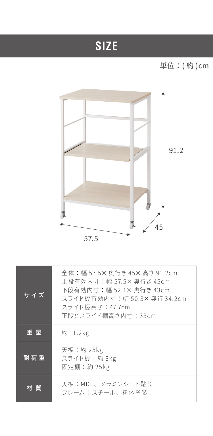 オーブンレンジ対応 キャスター付きキッチンラック W57.5