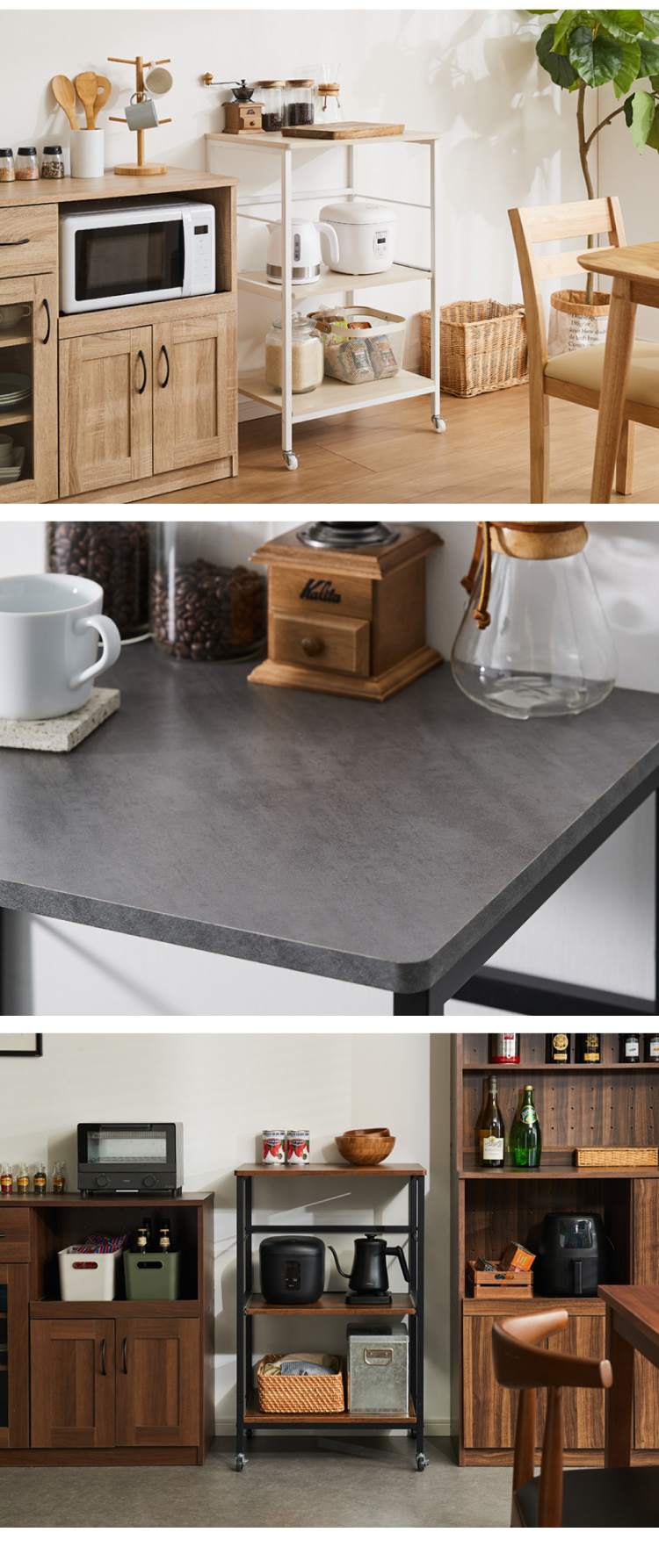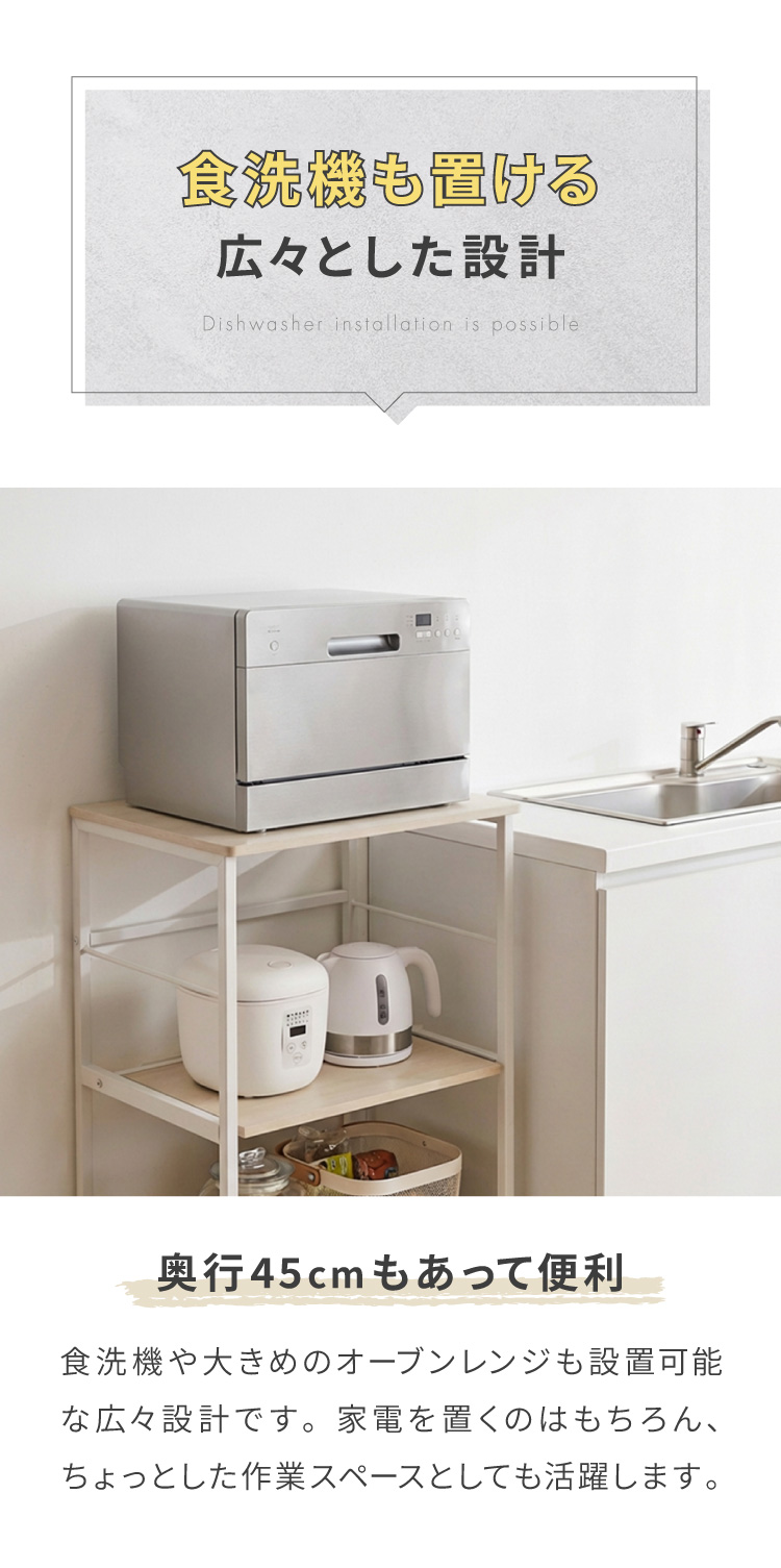 ・天板は奥行き45cmあるので、オーブンレンジや食洗機を置くことができます。
