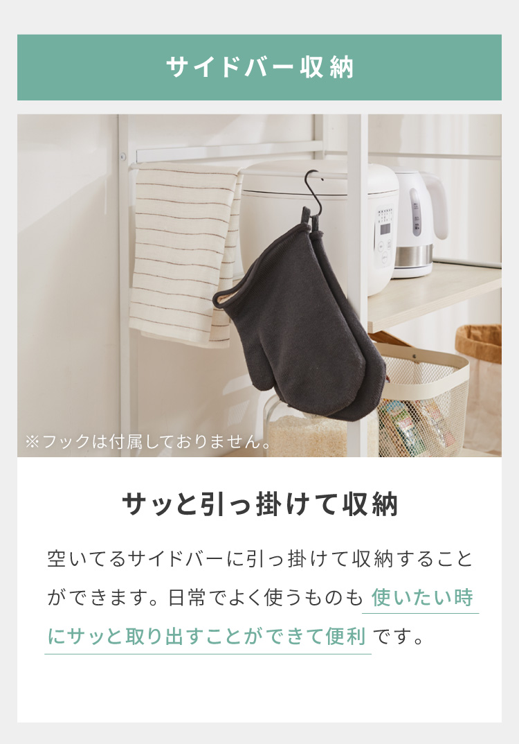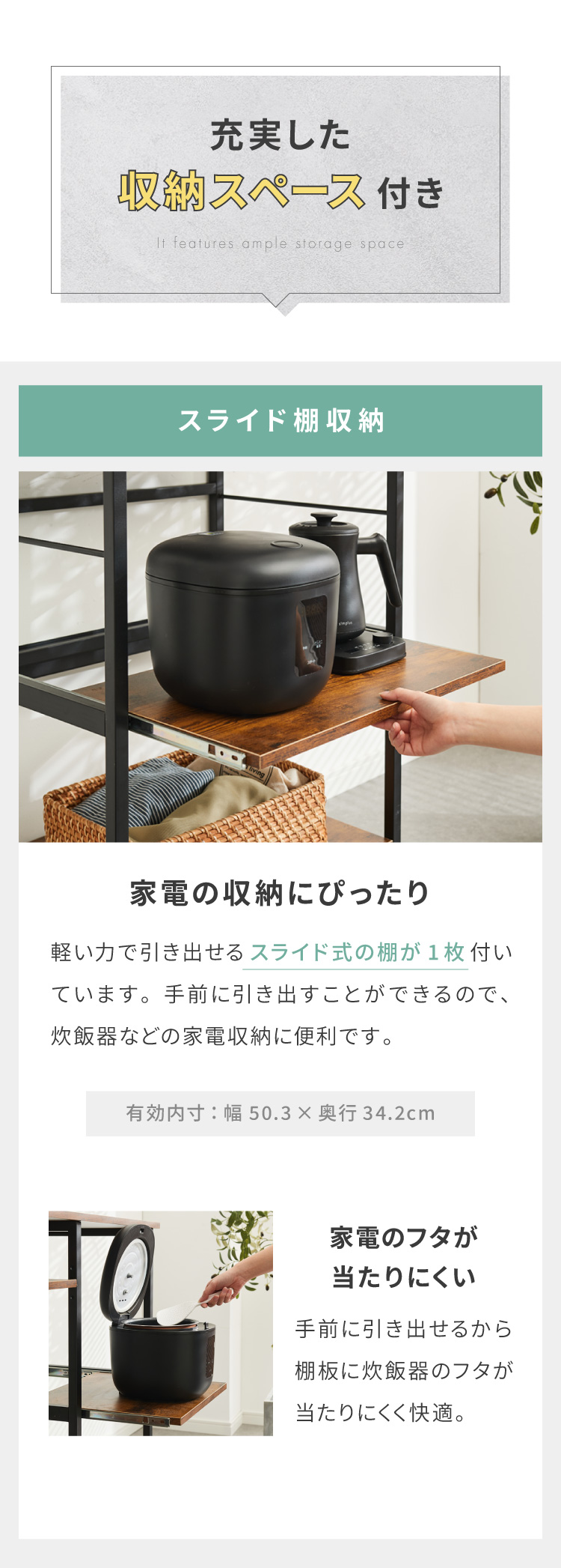 ・真ん中は可動棚で、炊飯器などで便利に使えます。