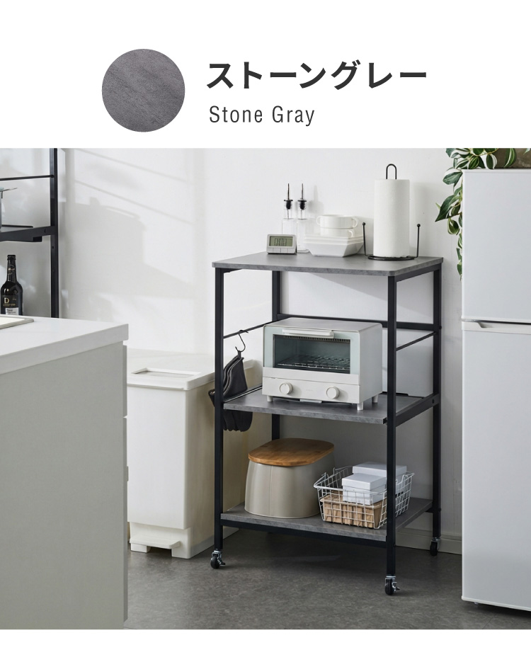 奥行き45cm キャスター付き キッチンラック 幅57.5cm 3段 VOID STACK series 大型レンジ対応 レンジ台 レンジボード レンジラック キッチン ラック 代引不可